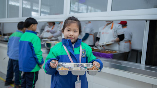 在太空厨房持续为航天员的饮食饮水健康保驾护航的同时,九阳的科技向善之路早已延伸至更广阔的大地。早在2010年,针对偏远地区学校孩子“吃不上营养餐”的问题,九阳启动公益厨房项目,从实地评估、标准化设计,到设备安装与使用培训,提供全链路支持,确保厨房交付即可使用。